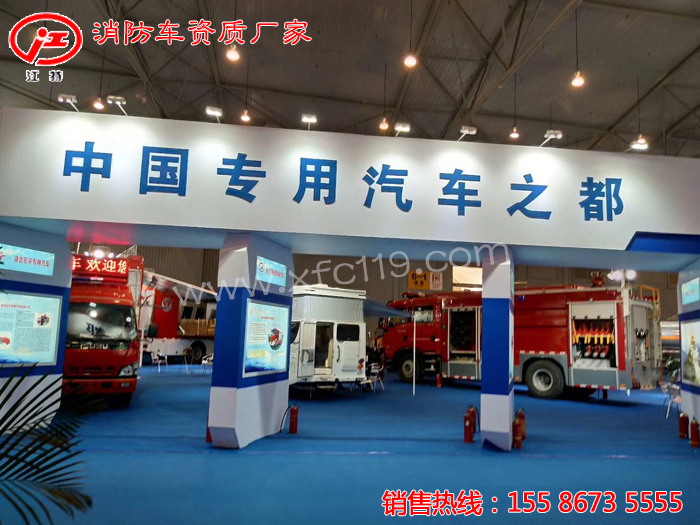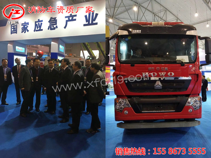 隨州展團的展位號N604-605,我公司參加此次展覽攜重汽T5G原裝雙排干粉.泡沫.水三連用消防車驚艷亮相,吸引了不少國內外的領導及新老用戶的眼球,歡迎廣大新老客戶領導來展廳參觀考察