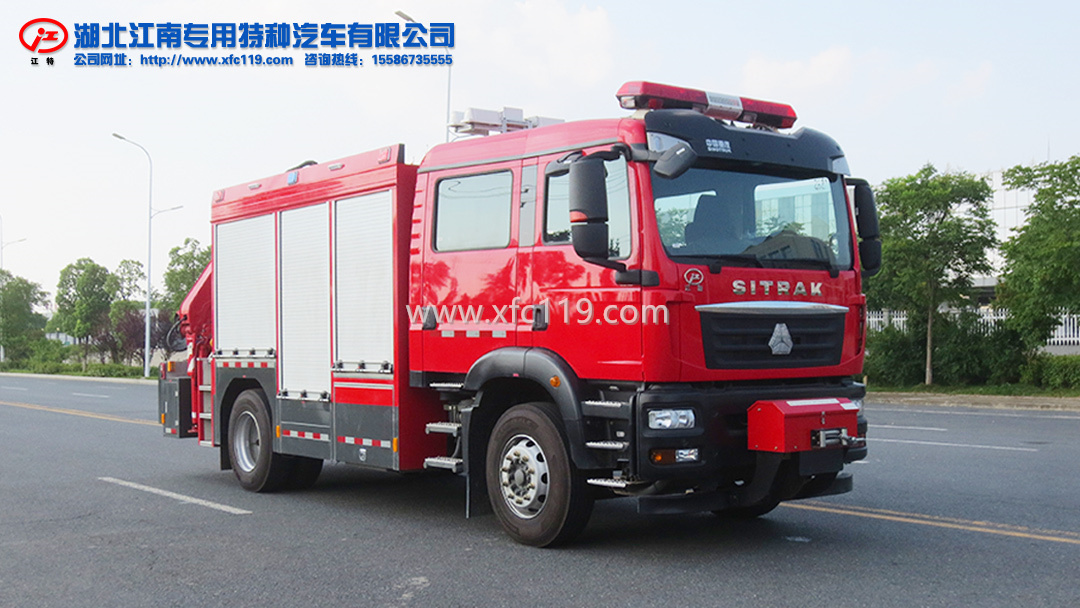 國六汕德卡搶險救援消防車為國六消防車車型,是我公司湖北江南專用特種汽車有限公司應用新技術、新工藝,自主研制開發的具有自主知識產權的最新消防車產品,該搶險救援消防車系選用中國重汽集團生產的汕德卡ZZ5206N471GF5二類汽車底盤改裝而成,原裝雙排駕駛室,可載含駕駛員在內的乘員6人,駕乘舒適輕便。 根據用戶需要可配備有偵檢類、警戒類、救生類、破拆類、照明類、個人防護類各種搶險救援器材。器材安裝在抽拉拖板、立式抽拉、旋轉拉架上。整車線型流暢、外觀新穎、美觀大方、器材布置合理緊湊、取拿方便,是消防部隊和企業進行搶險救援領域的好幫手。