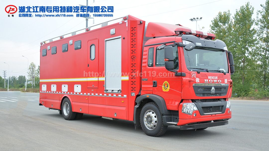 上裝廂體為整體式框架結(jié)構(gòu),廂體龍骨采用優(yōu)質(zhì)冷軋矩形管材焊接,廂體四壁和頂板外蒙皮為冷軋鋼板,廂體兩側(cè)上部外廓采用專用型材包角,滿足整車結(jié)構(gòu)強(qiáng)度要求。整車優(yōu)質(zhì)烤漆工藝,主色為消防紅,可以根據(jù)用戶需求設(shè)計(jì)制式外觀車貼。