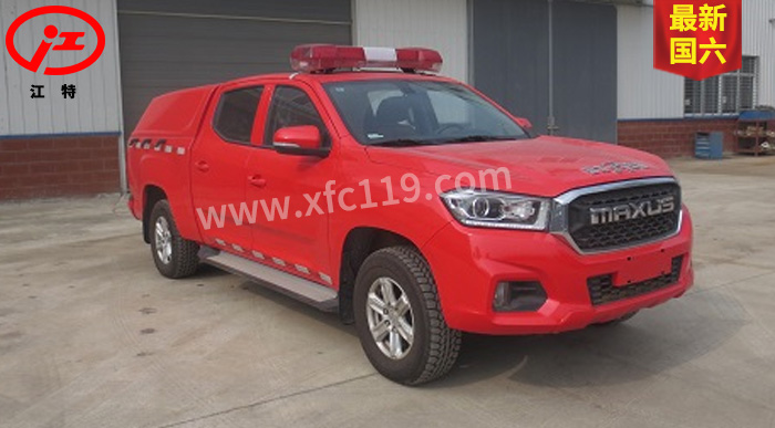 江特牌JDF5030GXFPW0.4/S6水霧消防車整車為國六消防車車型,采用上汽大通汽車有限公司生產(chǎn)的皮卡底盤SH1032E6DC-P改裝而成,